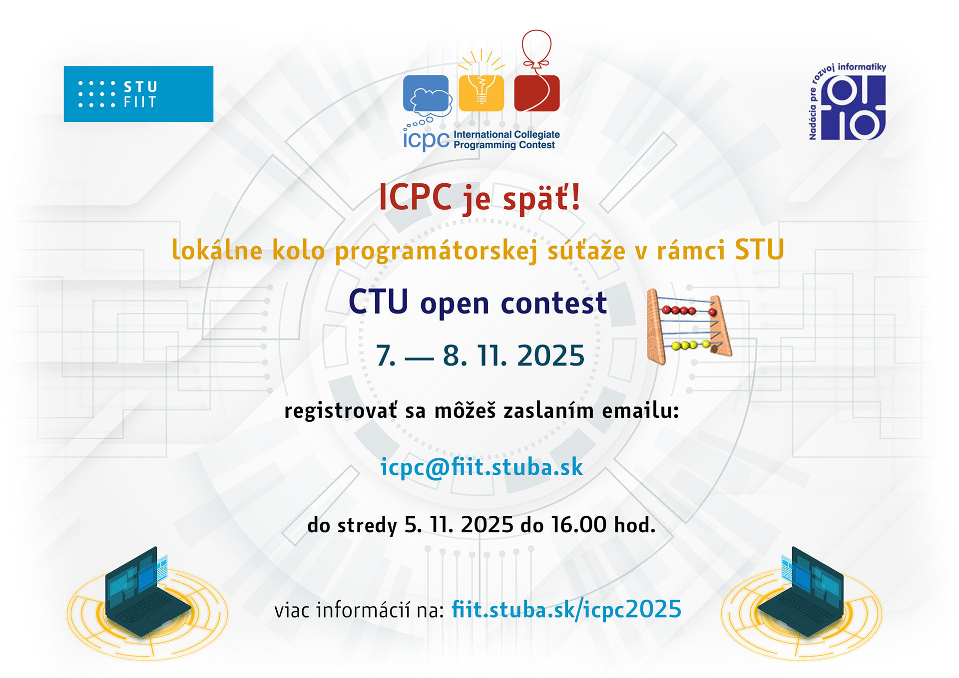 6. novembra 2025 | koniec registrácie cez ICPC registračný systém Pozrite si návod. |