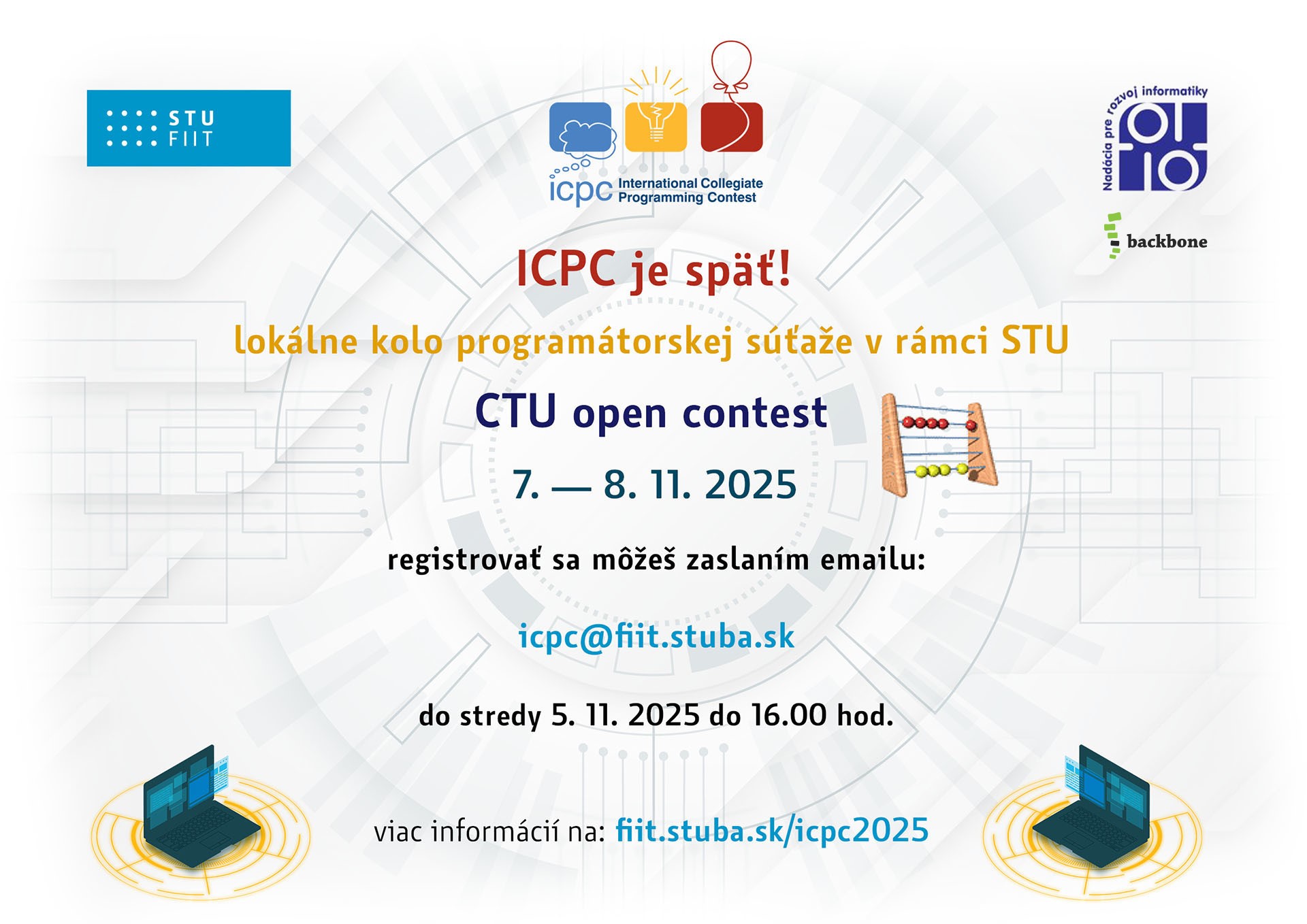 6. novembra 2025 | koniec registrácie cez ICPC registračný systém Pozrite si návod. |